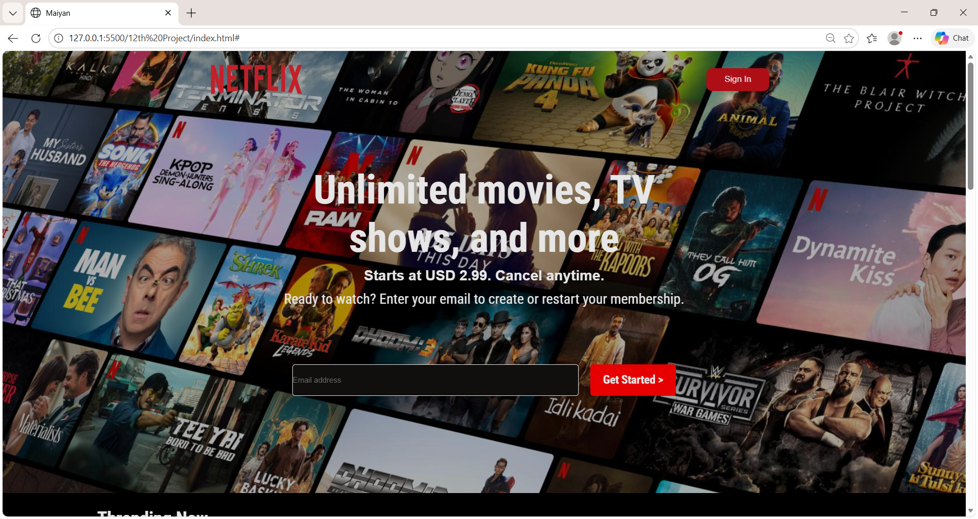 This project is a Netflix homepage clone built with HTML and CSS, focusing on layout, typography, and visual hierarchy. It recreates the hero section, branding, and call-to-action elements, demonstrating responsive design principles and clean, well-structured front-end code.
